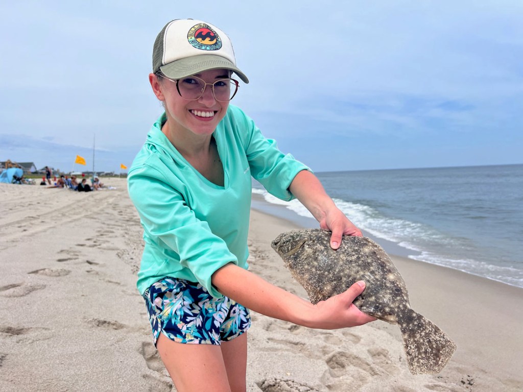 I learned how to rig it, and Caitlin and I started surf fishing for fluke.
